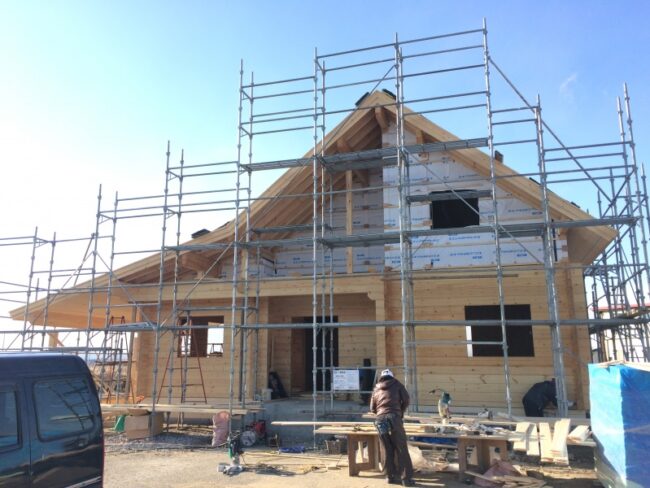 現在 仙台市宮城野区で建設中のログハウスです。 先月の28日に上棟したログハウスですが 北風厳しい季節ですが 順調にすすんでおります。 現場見学希望の方は お気軽にお問い合せ頂ければご案内致します。 完成後は レストラン…