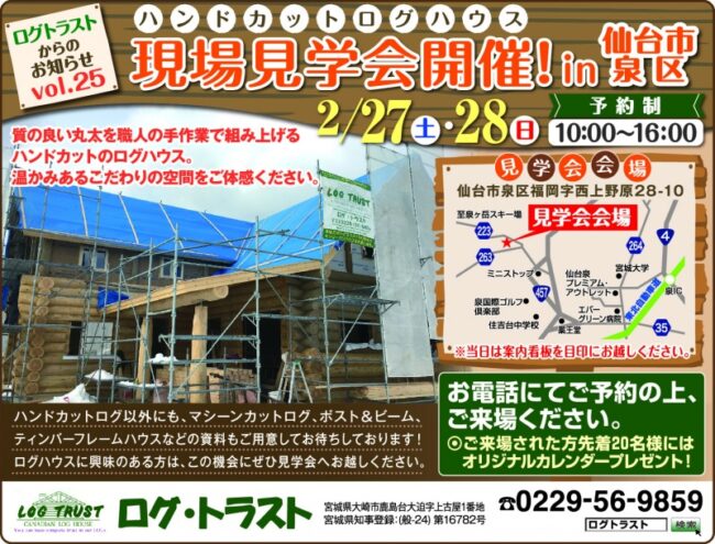 最近では 少なくなってきたハンドカットのログハウスですが オーナー様のご厚意により 現場見学会を開催することになりました。 是非 この機会に迫力満点のハンドカットログハウスを見に来てください。 会場には 各種ログハウスの…