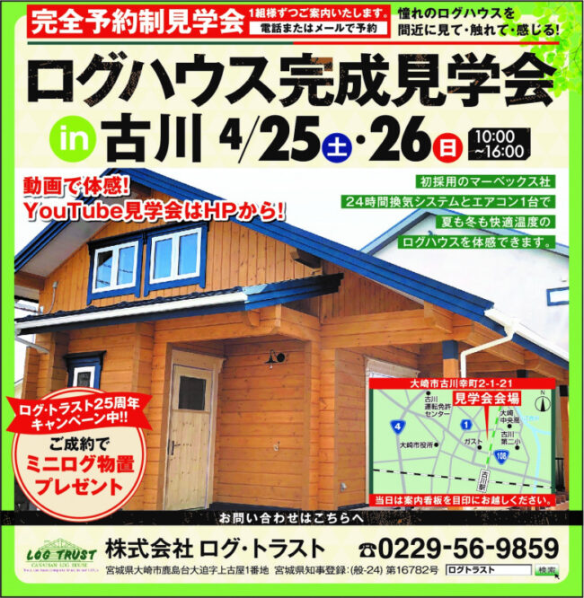 前回、県北の大崎市で現場見学会をいたしました マシーンカットログがついに完成いたしました。 そこで オーナ様のご厚意で完成見学を開催致しますが 今は世界中が 新型コロナウイルスへの感染防止対策を強化して 不要不急の外出を…