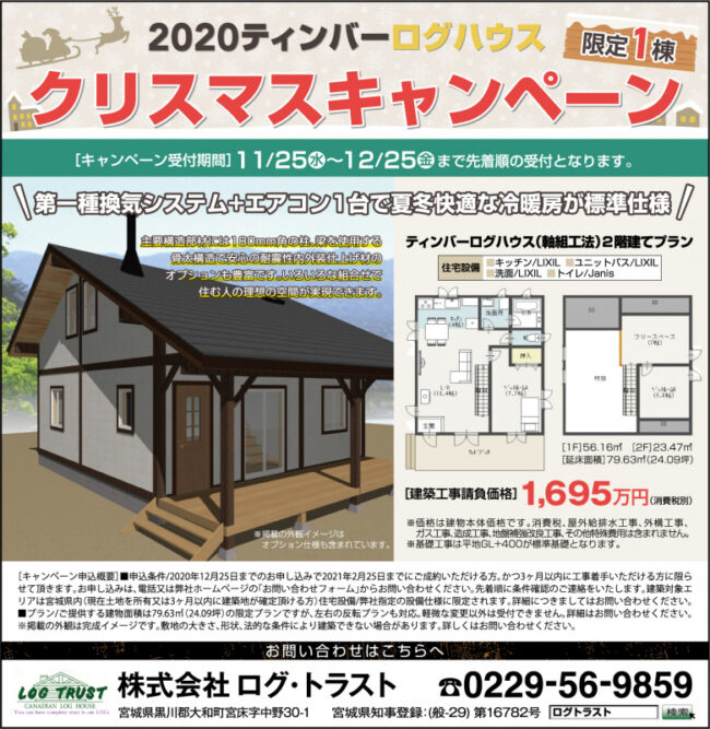 2020クリスマスキャンペーンがスタートいたしました。 ティバーログハウス 限定1棟 キャンペーン受付期間 11/25~12/25まで先着順で受付となります。 お申込は 電話、又はホームページお問合せホームからお願いいた…