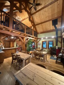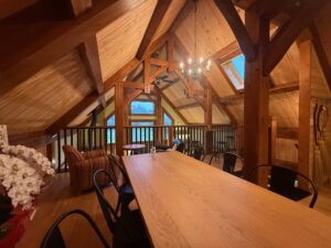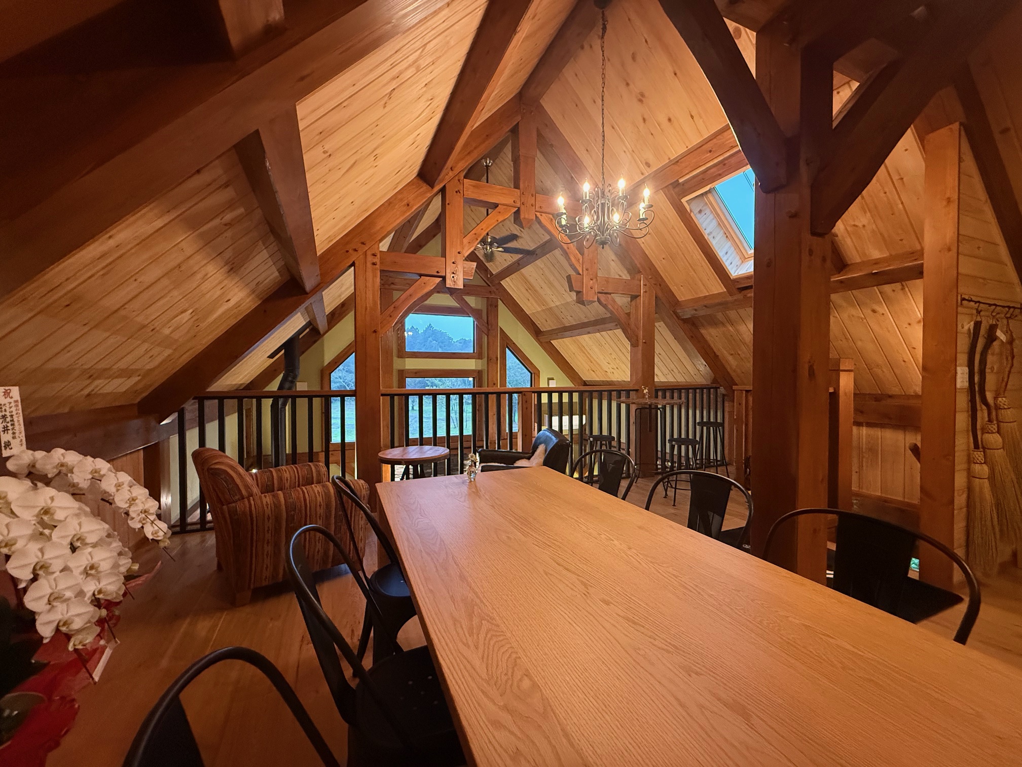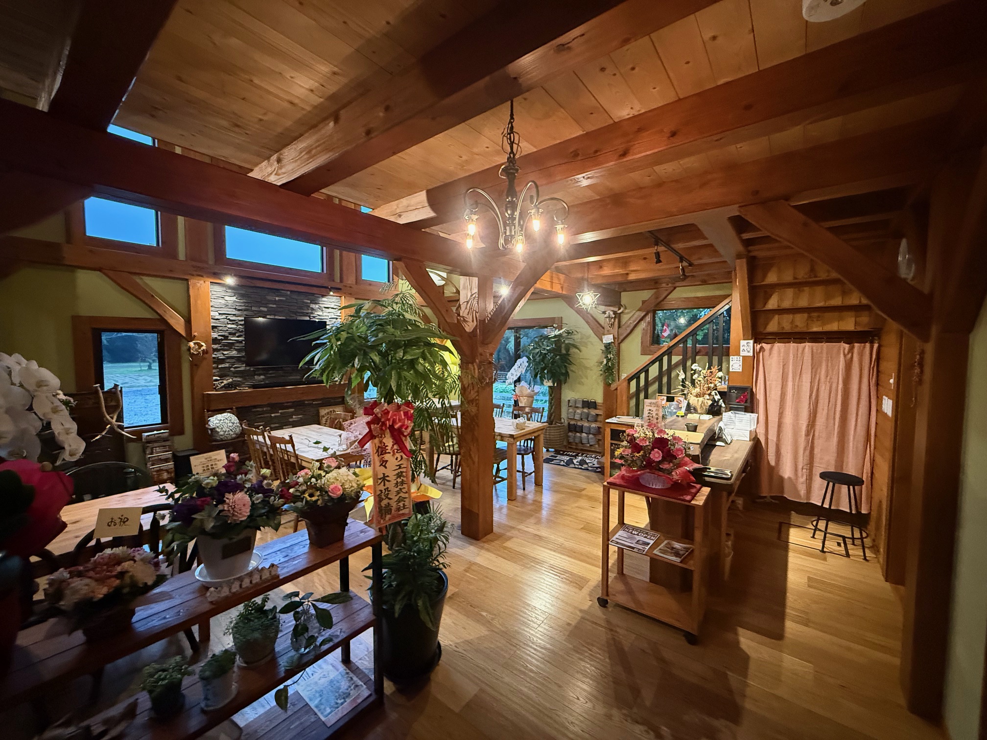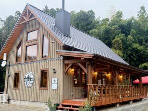 株式会社ログ・トラスト本社に隣接する敷地にティンバーフレームハウスの「カフェ紫星の森」を建設