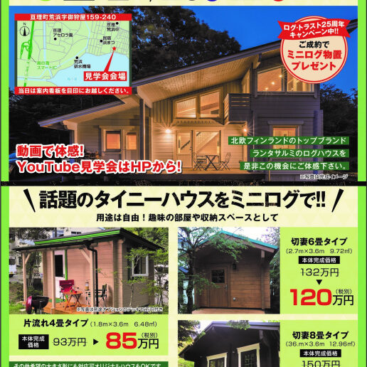 追加見学会開催決定!! 2025平屋ログ完成見学会開催!! IN蔵王町 ログハウス宮城県 ログハウス仙台市
