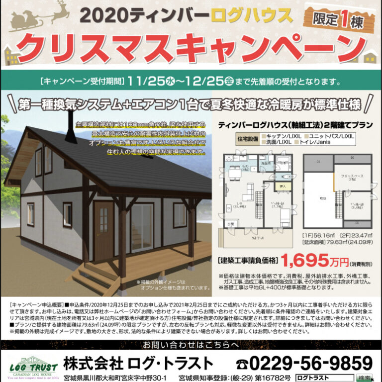 2020クリスマスキャンペーンがスタートいたしました。 ティバーログハウス 限定1棟 キャンペーン受付期間 11/25~12/25まで先着順で受付となります。 お申込は 電話、又はホームページお問合せホームからお願いいた…