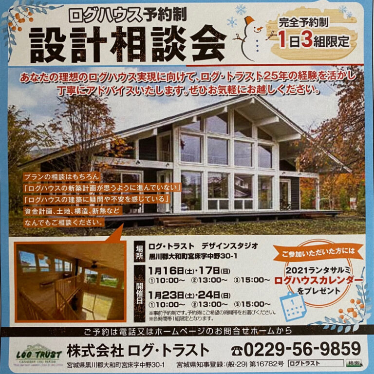 6月の週末は ログ・トラスト デザインスタジオにてログハウス相談会を開催します 黒川郡大和町宮床の 弊社デザインスタジオを会場に行います。 ログハウスの新築、種類大きさ、価格、土地のこと、住宅ローンの事、物置サイズのログ…